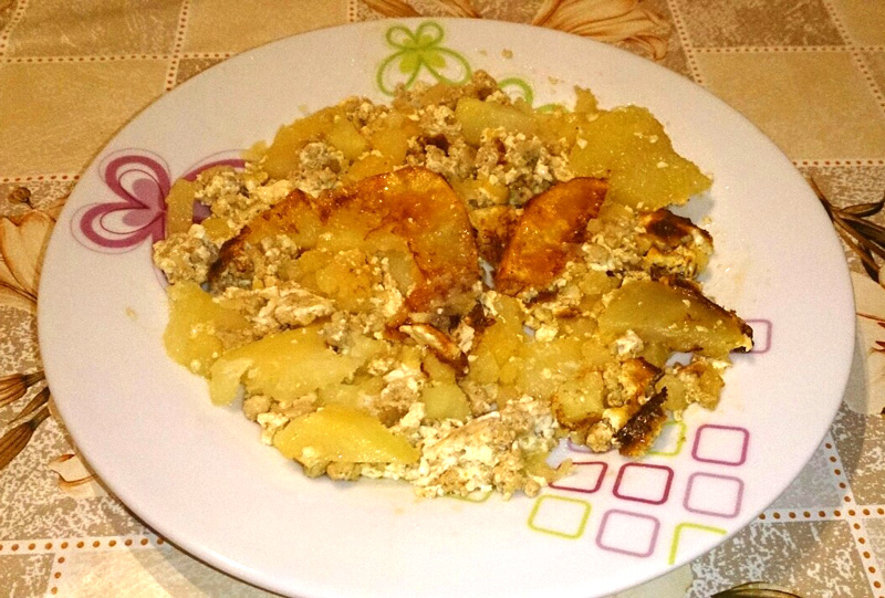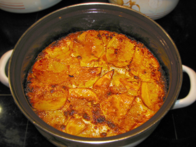 • Pokrijte poslednjim slojem krompira, pa prelijte smesu mleka i jajeta preko.